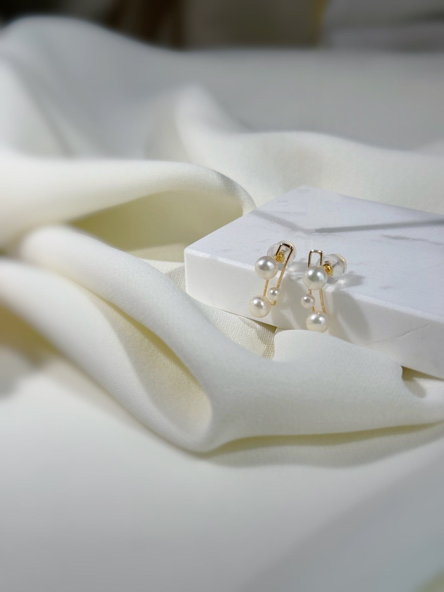 18K Solid Gold with Japan Akoya Pearl Earring -Triplet Note Earring
