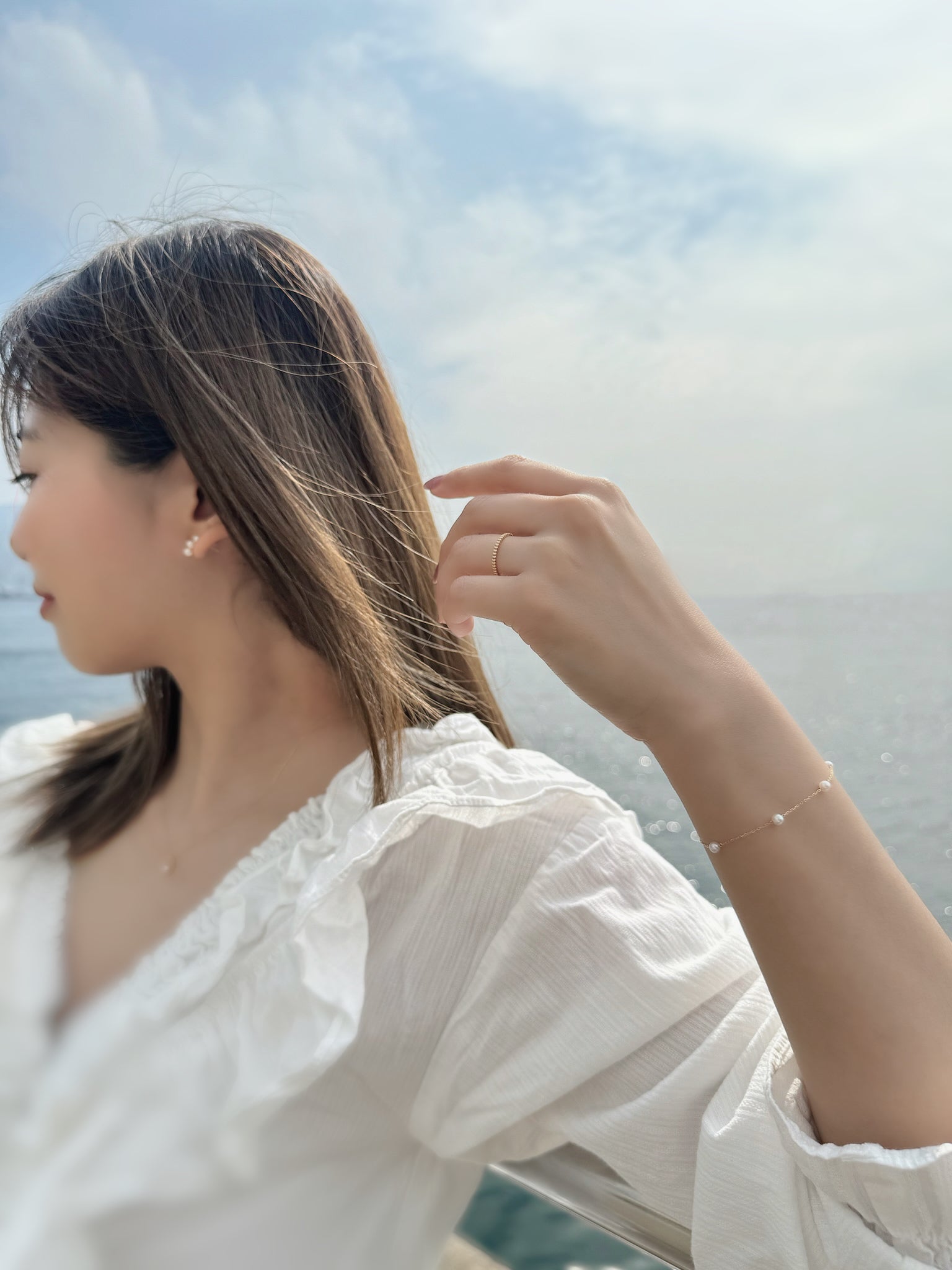 18K Solid Gold with Five 5mm Japan Akoya Pearl Bracelet -Perfect Round Bracelet