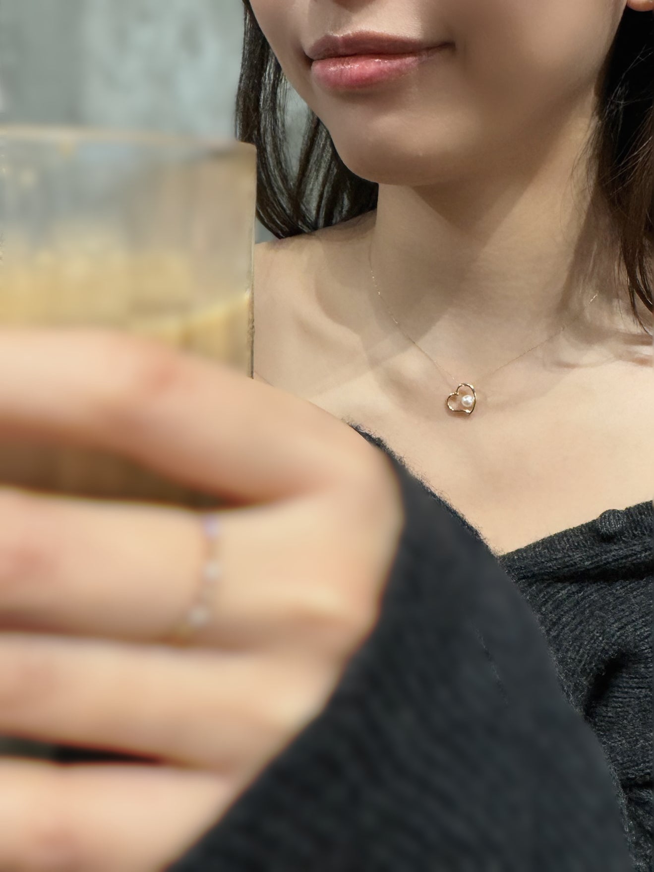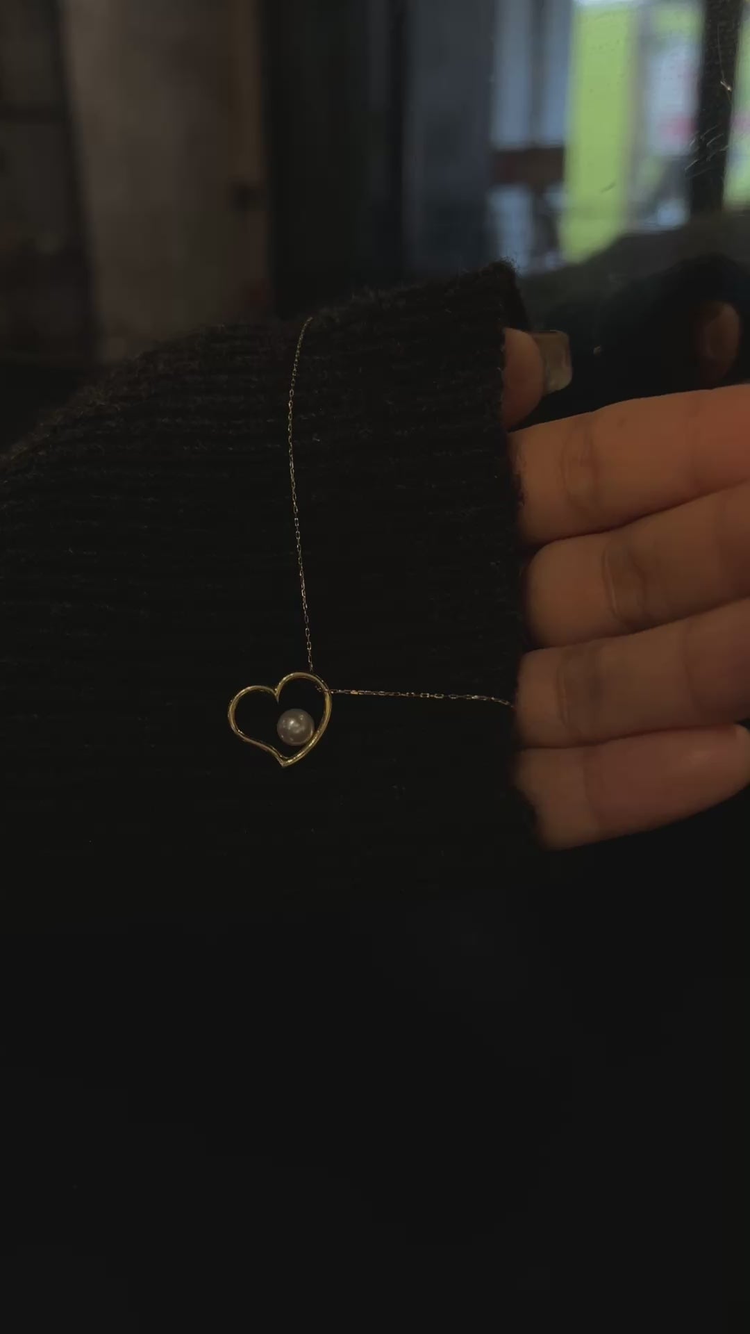 18K Solid Gold with 5mm Japan Akoya Pearl - Heart Necklace