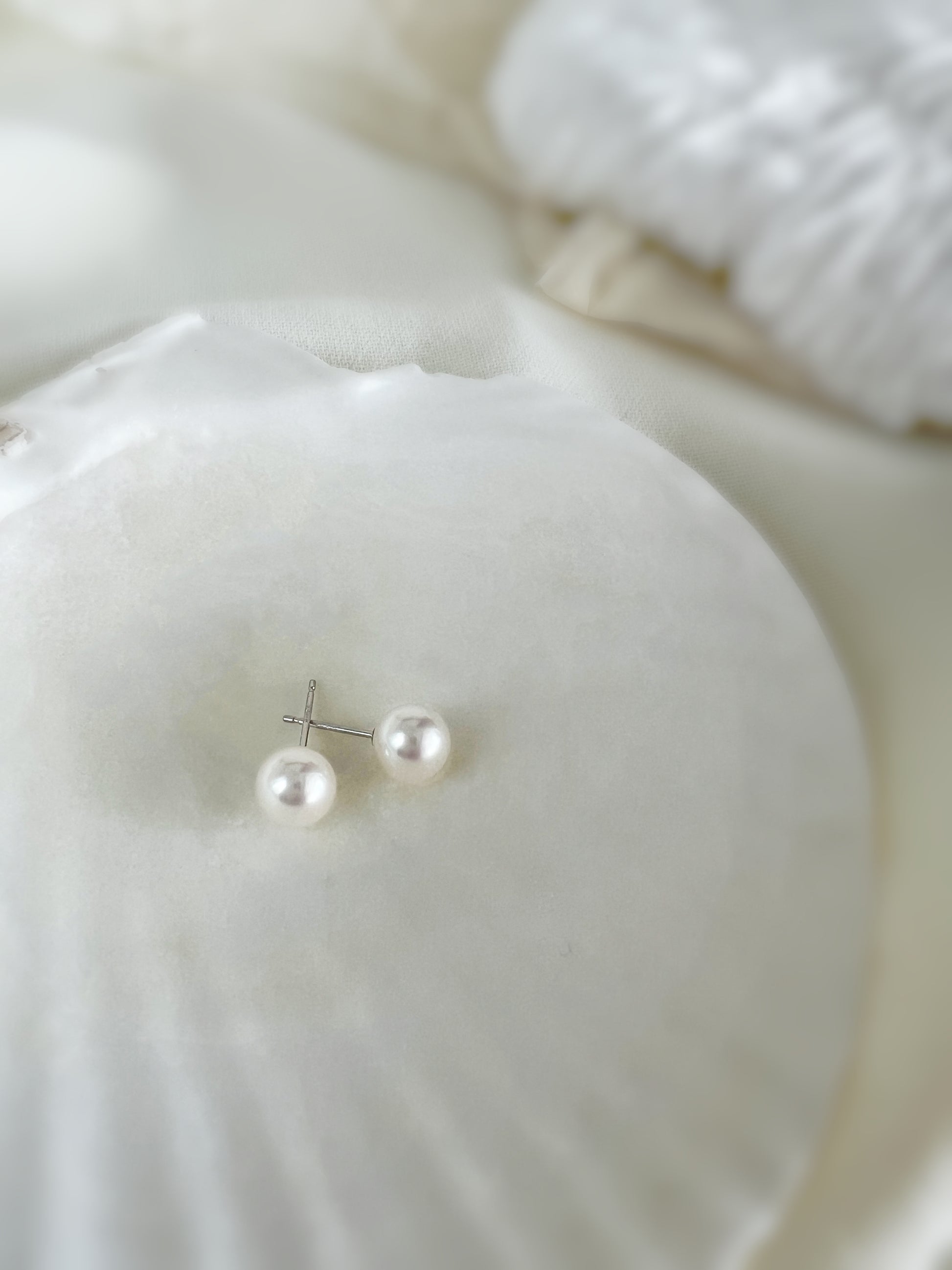 18K Solid White Gold with Japan Akoya Pearl Earring -Timeless Pearl Earring