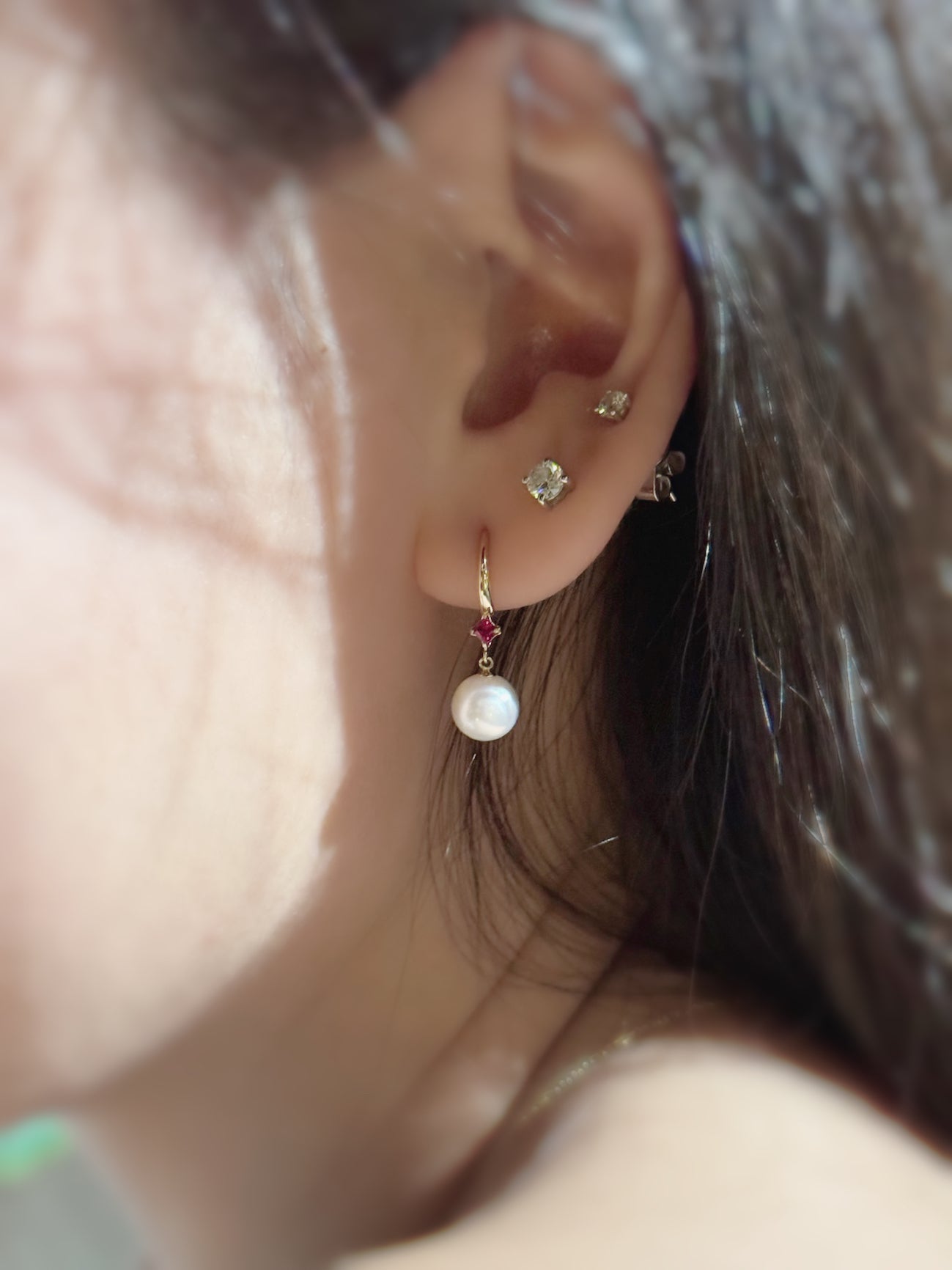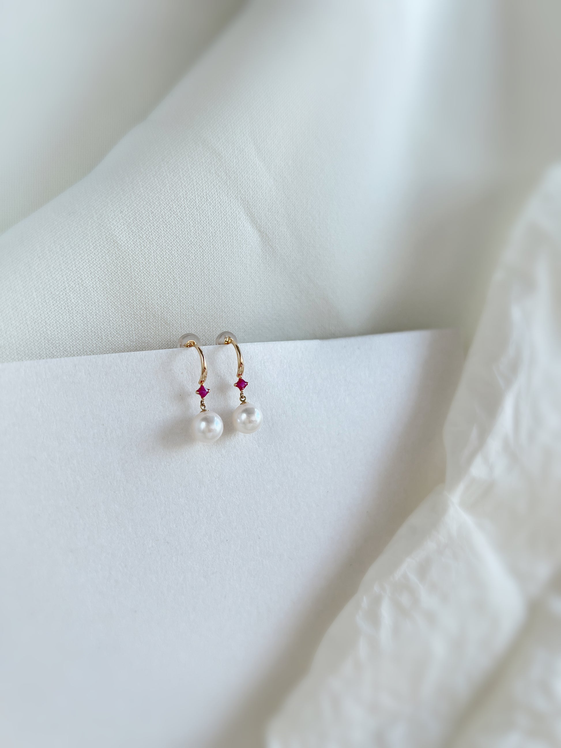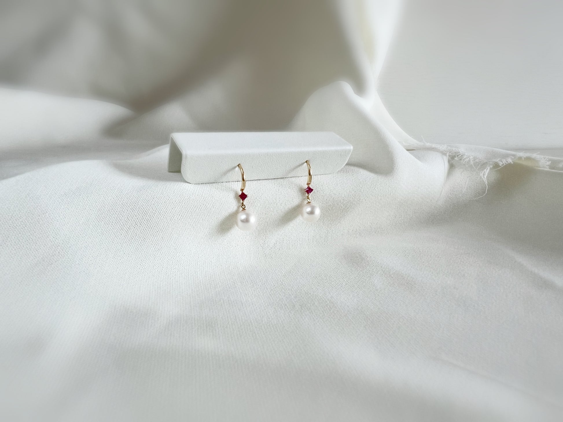 18K Solid Gold Ruby & Japan Akoya Pearl Earring -Romantic Promise Earring