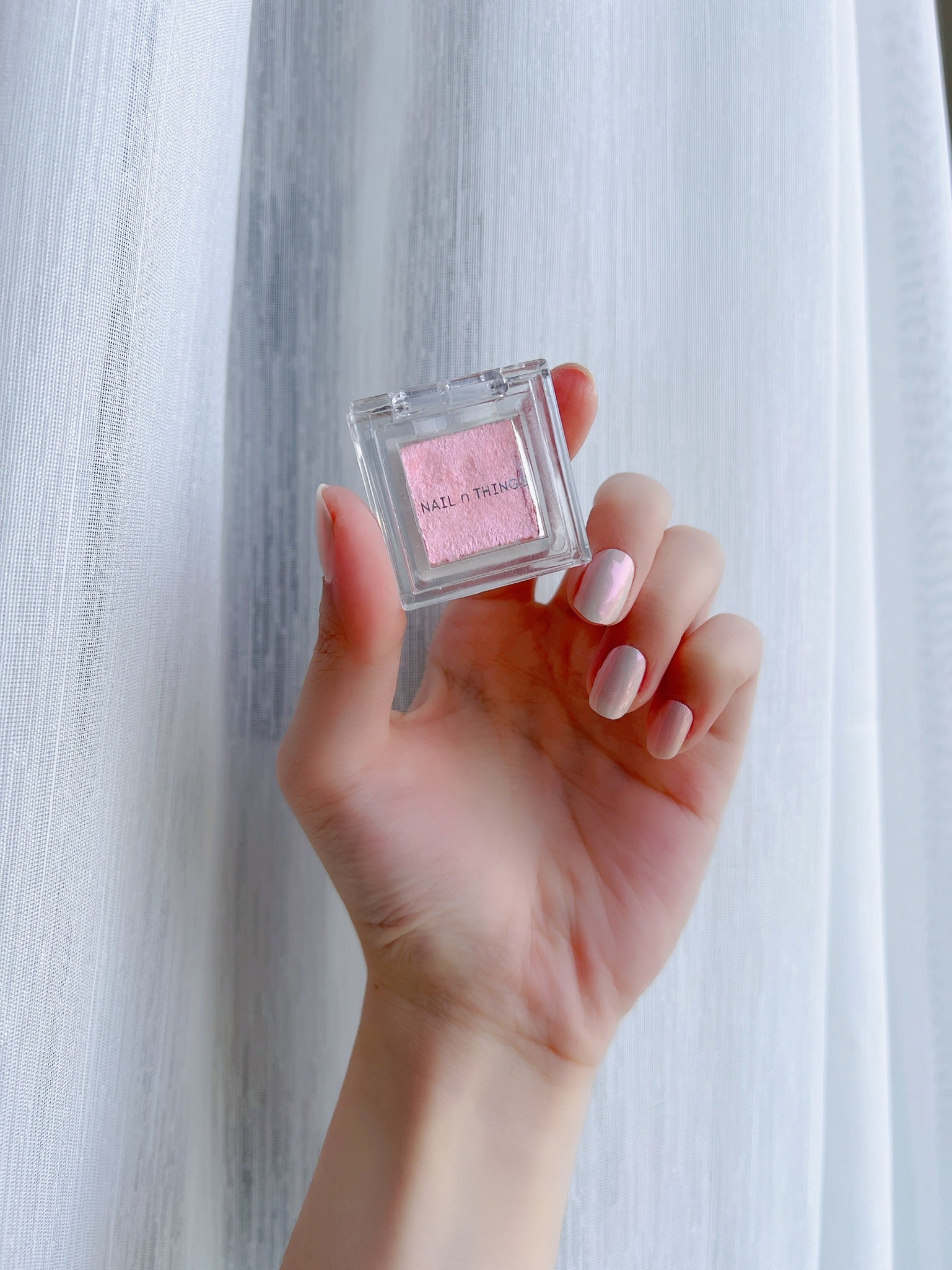 1. 塗上光療膠 後,用海綿棒將人魚幻彩粉均勻塗抹在甲面上。