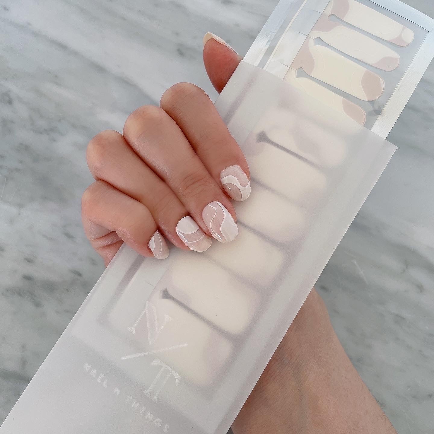 Picasso is a transparent base with line design nail wrap.