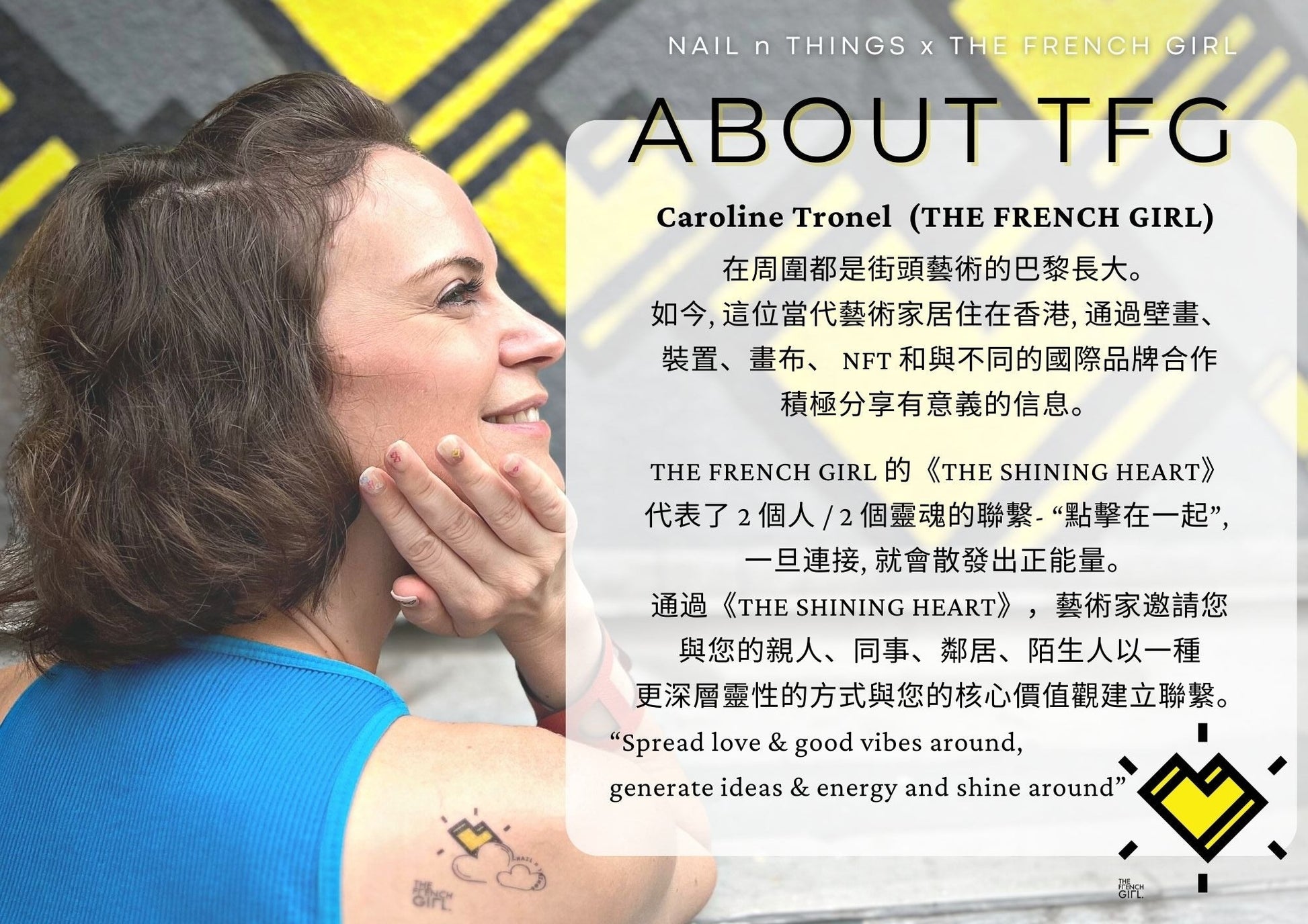 THE FRENCH GIRL 的《THE SHINING HEART》代表了 2 個人 / 2 個靈魂的聯繫- “點擊在一起”, 一旦連接, 就會散發出正能量。通過她的作品,藝術家邀請您與您的親人、同事、鄰居、陌生人以一種更深層靈性的方式與您的核心價值觀建立聯 。